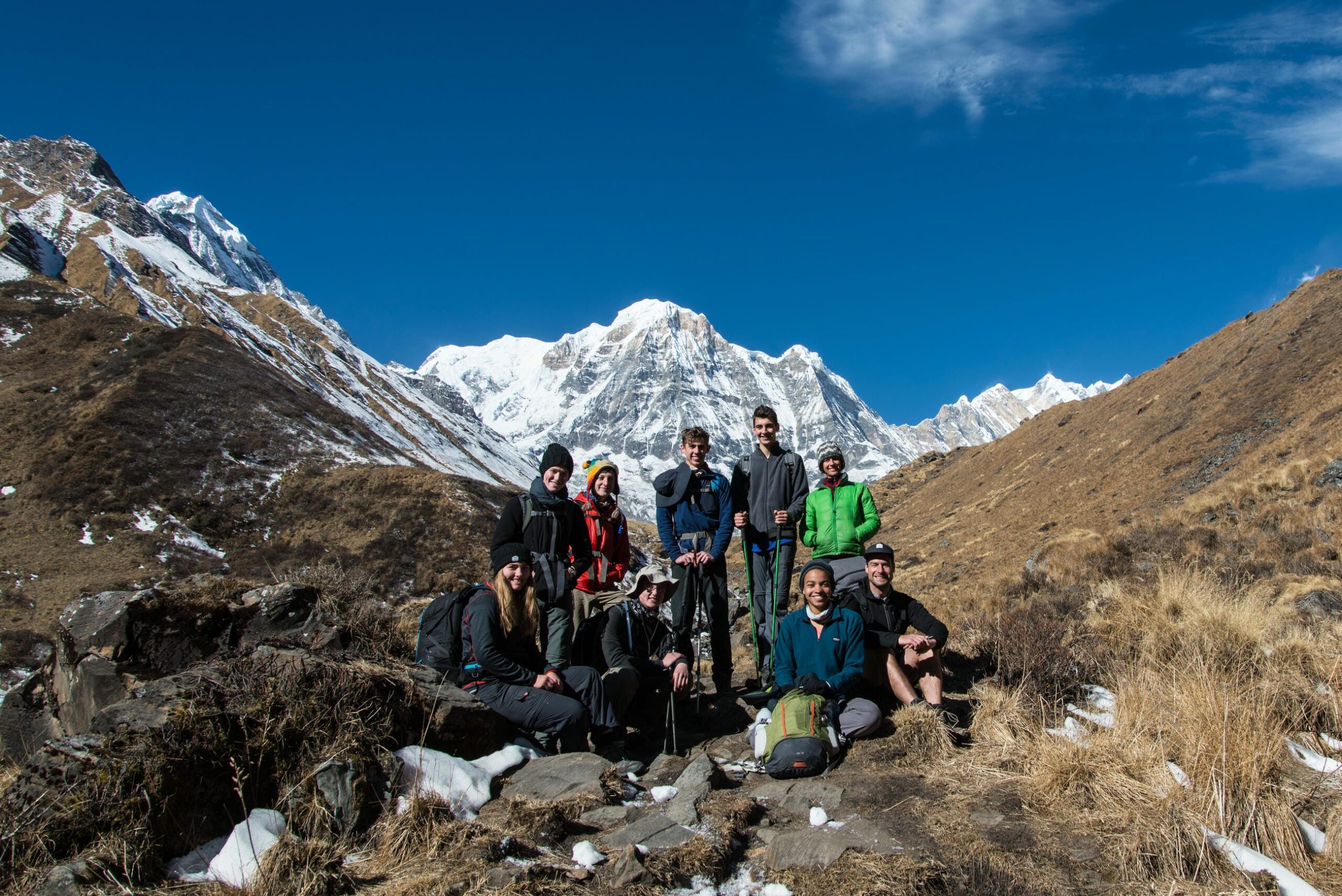 Your first impression of Nepal’s crazy capital isn’t something you’ll forget in a hurry. A sensory overload of sounds and smells, Kathmandu is amazing but full-on. Dive into expedition life, assign some team roles and meet the ground team to discuss your plans. You’ll also need to buy a SIM card for the team phone, so head to the market and get to grips with the currency, the Nepalese Rupee. Jobs done, it’s time to explore. Navigate through colourful streets and bustling markets. Smell the food sizzling on street stalls, and taste your first momos (Nepalese dumplings). For a dose of culture, check out Durbar Square and the Boudhanath Stupa. You could also visit the ancient city of Bhaktapur and Nepal’s most important Hindu temple, Pashupatinath. Then catch a flight to Pokhara, a lakeside city nestled beneath snowcapped peaks. Soar above forested hills, winding rivers, and colourful towns for a stunning aerial view of Nepal.