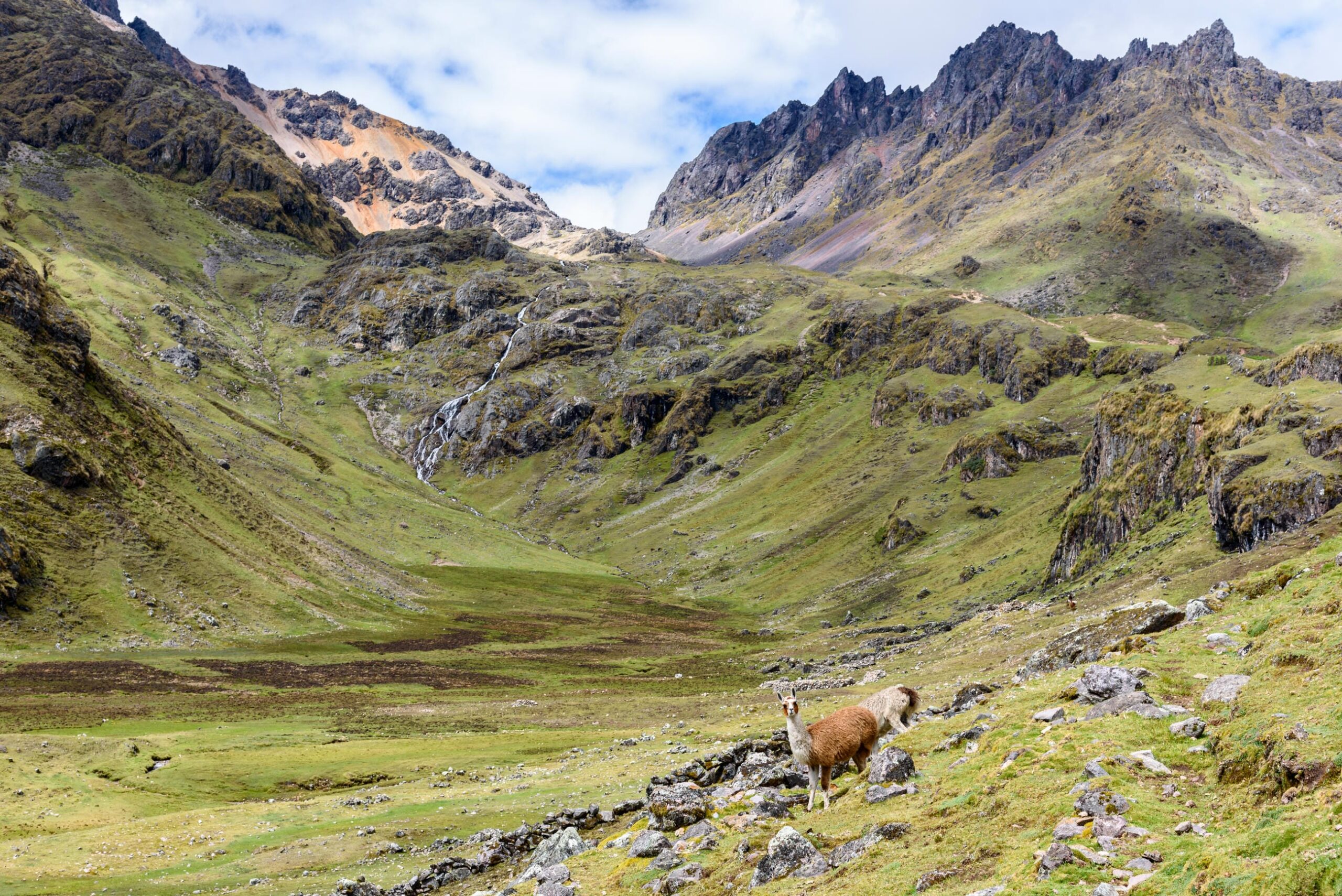Follow ancient Incan paths winding past glacial lakes and high-altitude ridges, with snow-capped peaks towering above. As you walk, you’ll pass herds of alpacas grazing on the hillsides and cross paths with locals wrapped in bright woven blankets, heading between villages. Stop for lunch beside a rushing mountain stream and breathe in that crisp, thin air, it’s as pure as it gets.